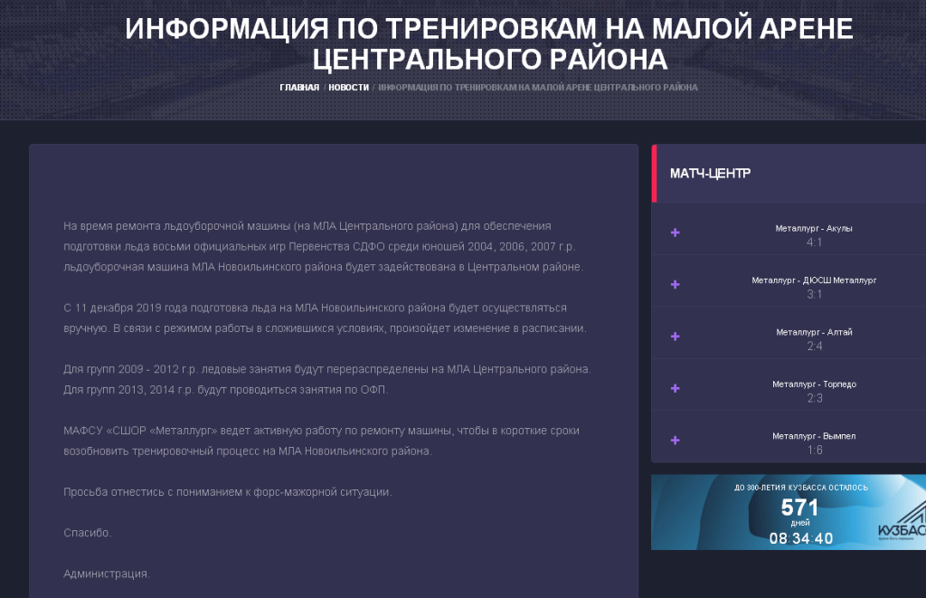 Что мы имеем на конец 2019 года? Результаты СШОР "Металлург" падают, все меньше команд выигрывают первенство Сибири - Дальнего Востока, квалифицированные кадры (как тренеры, так и воспитанники) покидают Новокузнецк, техническое обеспечение оказалось не на должном уровне.